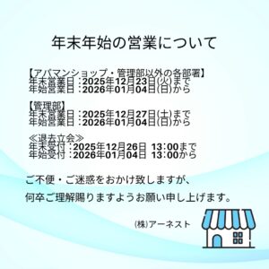 年末営業日:2025年12月27日まで